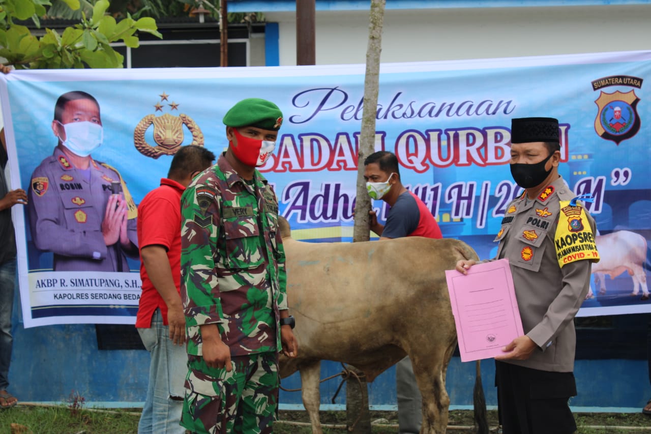 Kapolres Serdang Bedagai AKBP Robinson Simatupang dalam sambutannya mengatakan bahwa pelaksanakan kegiatan Ibadah Qurban Idul Adha 1441 H di Polres Serdang Bedagai sebanyak 18 ekor sapi dan 7 ekor kambing.