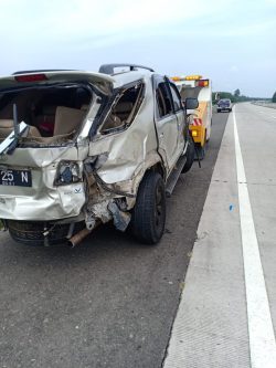 Insiden kecelakaan tunggal mobil Toyota Fortuner Nopol BK-25-N terjadi Jalan Tol Medan – Teluk Mengkudu Km. 67.200 tepatnya di Kec. Teluk Mengkudu Kab. Serdang Bedagai, Sabtu (8/8/ 2020)sekira pukul 13.00 WIB.
