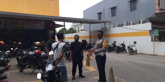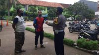 Bhabinkamtibmas Polsek Kotabaru Polres Karawang Polda Jabar Aiptu Salim melaksanakan kegiatan rutinitas sambang tatap muka dan dialogis Serta Himbauan 3M+1T dengan penjaga sekolah sakobar di Desa Sarimulya Kec.Kotabaru .Kab Karawang. Jumat (23/10/2020).