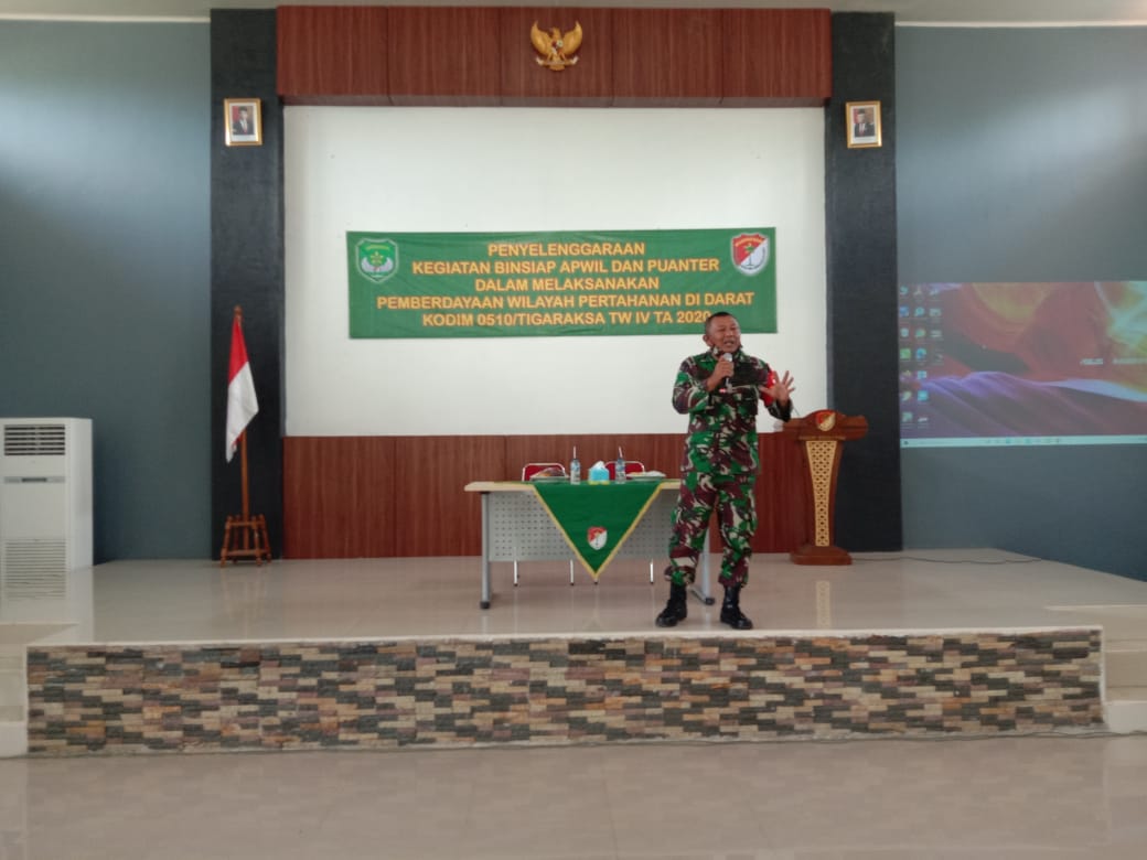 Kodim 0510/Tigaraksa Korem 052/Wkr melaksanakan kegiatan Binsiap Apwil dan Puanter TW IV Tahun Anggaran 2020 yang di gelar di Aula Kecamatan Tigaraksa Kebupaten Tangerang, Selasa (03/11/2020).