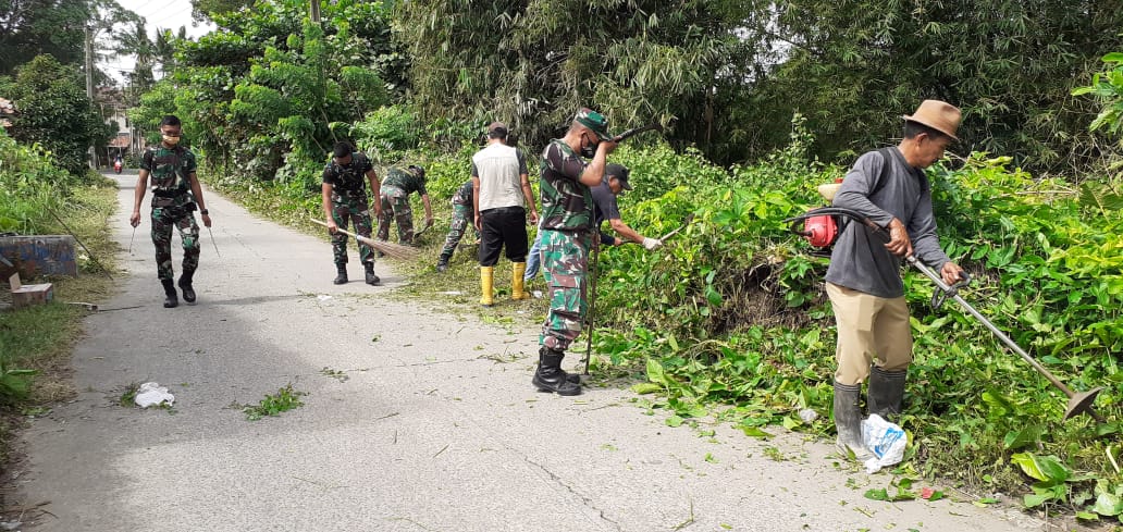 Anggota Koramil 07/Kresek Karbak Bersihkan Jalan Kampung Panalakan