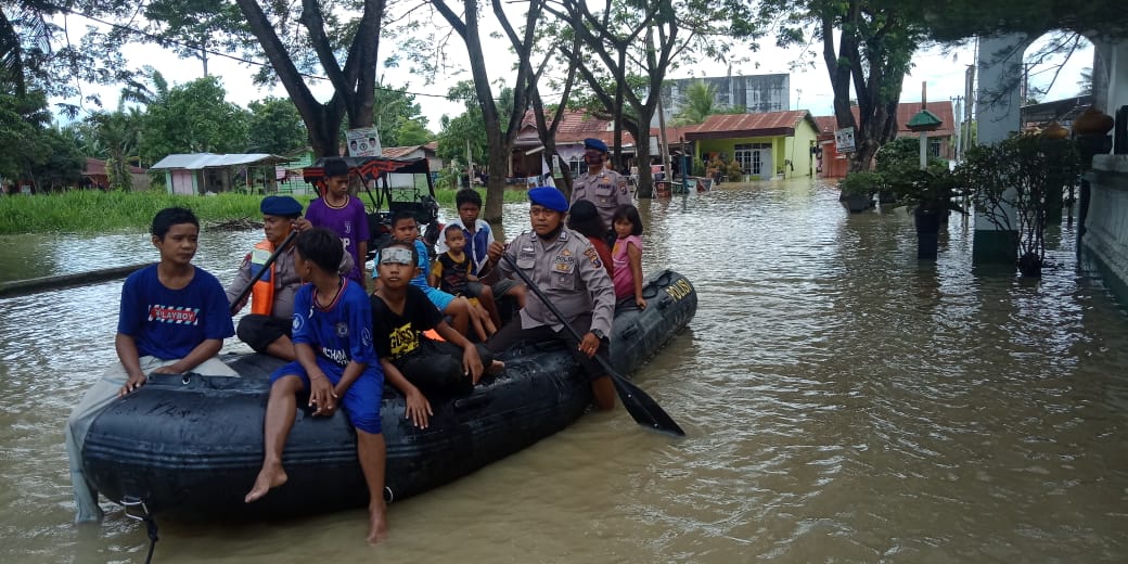 “Atas laporan masyarakat terkait terjadinya musibah banjir, kita lanngsung turunkan anggota Pol Air lengkap dengan Perahu karet untuk evakuasi warga,” Kata AKBP Robin