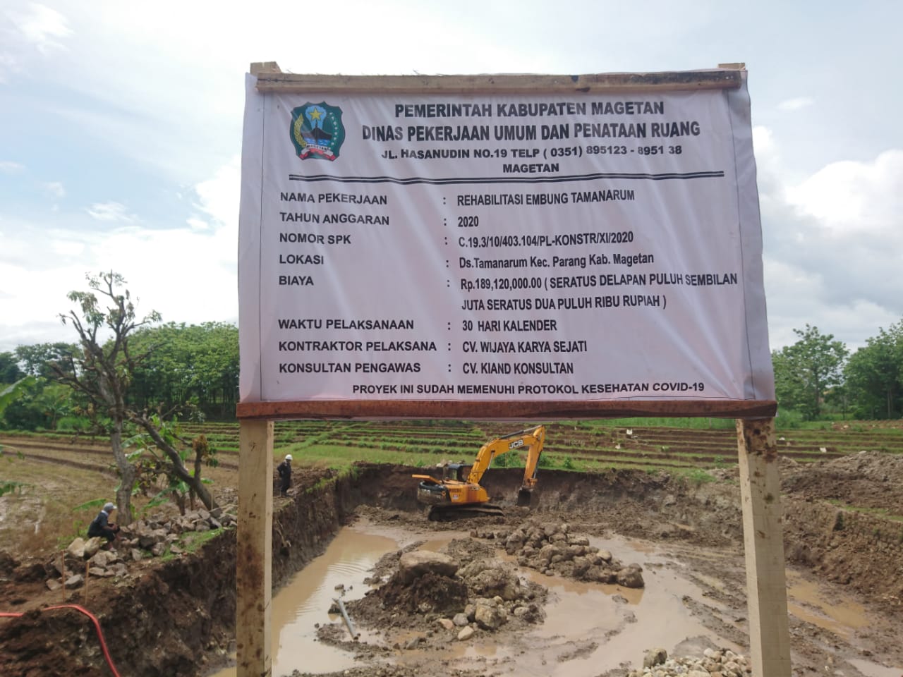 Kepala Dinas PUPR Magetan, Muhtar Wahid ST, MT,melalui Kepala Bidang (Kabid) Sumber Daya Air (SDA) Dinas PUPR Kabupaten Magetan, Yuli K. Iswahyudi, ST, mengatakan” Normalisasi embung Tamanarum ini merupakan upaya dinas PUPR dalam membantu masalah yang dihadapai para petani saat musim kemarau, setidaknya dengan adanya embung Ini bisa menjaga sumber air yang ada di sekitar embung karena selain untuk penampung air hujan, embung ini juga sebagai peresapan air tanah,rehabilitasi yang kami laksanakan antara lain mengeruk sedimen yang ada di embung juga membangun tanggul penahan embung ini”tuturnya.(Kamis,26/11/2020).