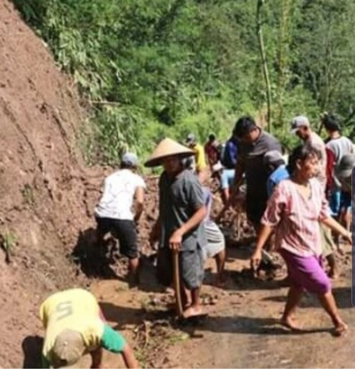Bupati bersama masyarakat berbaur jadi satu membersihkan materia berupa tanah dan bebatuan agar akses jalan bisa digunakan kembali. Tidak hanya itu tetapi Bupati jepara H. Dian Kristiandi juga memberi santunan kepada korban berupa logistik.