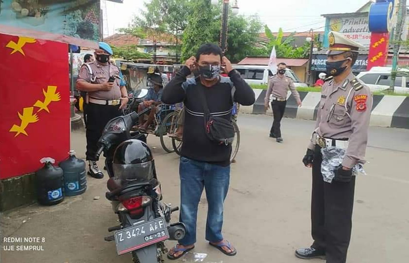 Sebanyak 6 personel Polsek Kadipaten Polres Majalengka Polda Jabar diterjunkan untuk memberikan masker gratis kepada warga. Pemberian masker ini dilaksanakan dalam kegiatan operasi yustisi penegakan disiplin protokol kesehatan yang dipimpin langsung oleh Kanit Lantas Polsek Kadipaten Polres Majalengka Polda Jabar Ipda Suparmo.