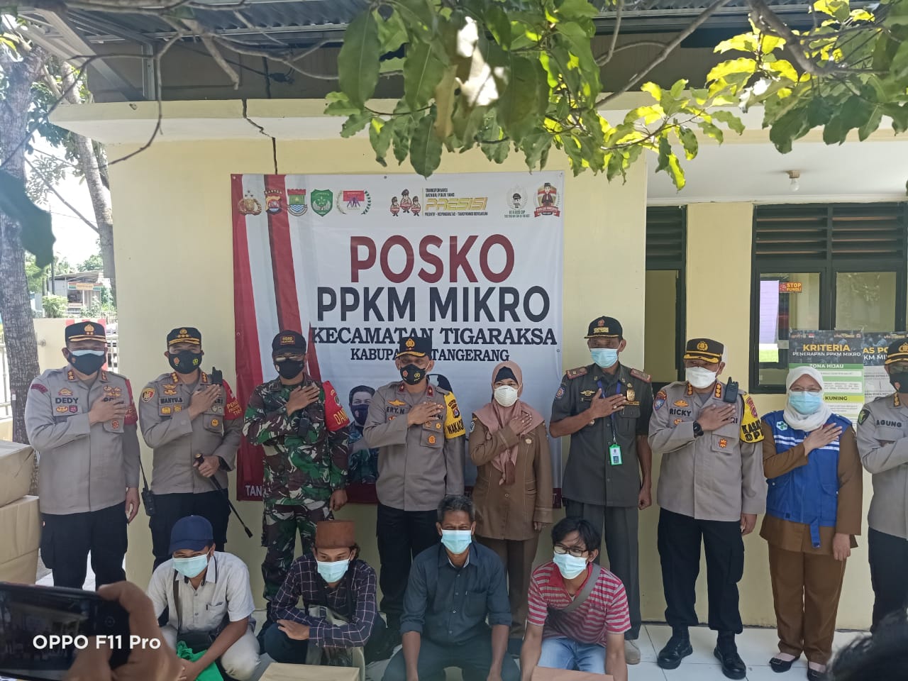 peninjau kampung tangguh untuk meninjau langsung posko PPKM mikro di wilayah hukum Polsek Tigaraksa teritorial Koramil Tigaraksa.