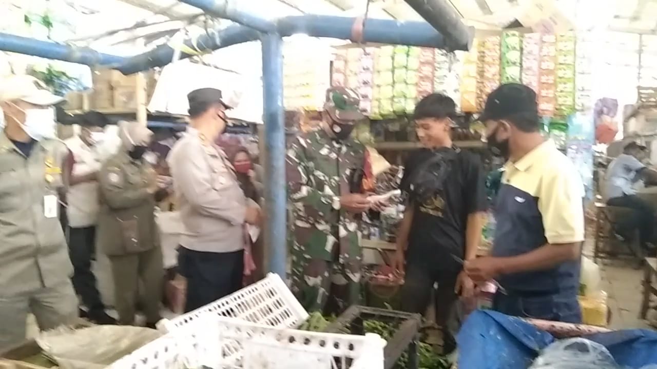 Koramil 09/Mauk menurunkan sebanyak 6 personil mengimplementasikan Pemberlakuan Pembatasan Kegiatan Masyarakat (PPKM) skala mikro di Pasar Tradisional Mauk Timur Kecamatan Mauk Kabupaten Tangerang, Selasa (23/03/2021).