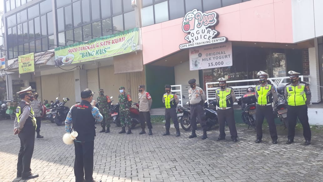 Sebelum melakukan patroli wilayah dilaksanakan kegiatan Apel gabungan pembagian tugas dalam rangka operasi Pemberlakuan Pembatasan Kegiatan Masyarakat (PPKM MIKRO) Penegakan disiplin Protokol kesehatan.