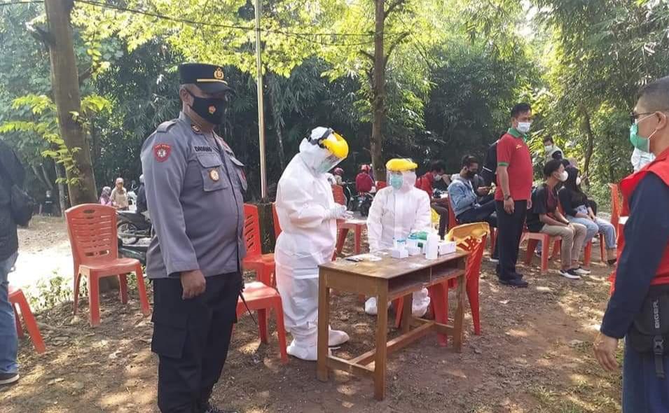 Kapolsek Sukahaji Polres Majalengka Polda Jabar AKP Dadang Supriadi, lakukan monitoring pemeriksaan rapid test antigen di obyek wisata Situ Cioanten, Kecamatan Sukahaji/Sindang Kabupaten Majalengka, Selasa (18/5/2021).
