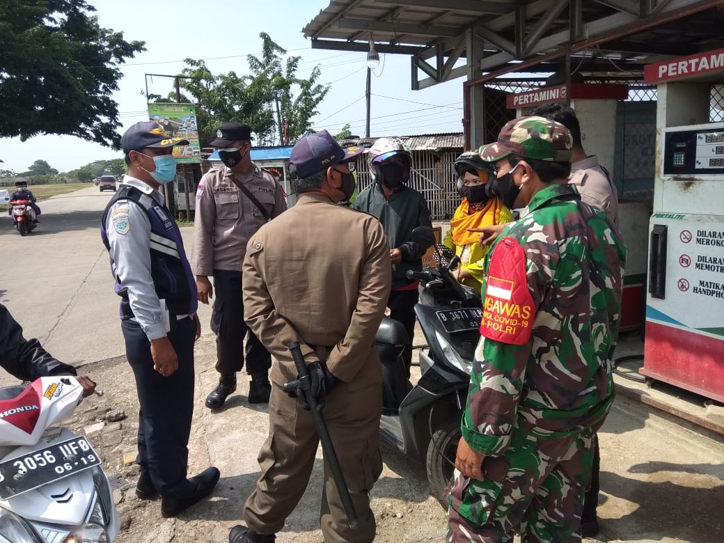 Opwrasi Yustisi gabungan dalam rangka Pemberlakuan Pembatasan Kegiatan Masyarakat (PPKM) dan penyekatan lebaran di wilayah Koramil 14/Png Kodim 0510/Tigaraksa, Selasa (18/05/2021).