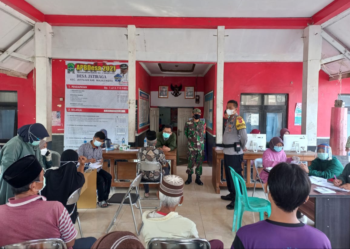 Hari kedua jegiatan vaksinasi dilaksanakan di aula balai desa Jatiraga oleh team vaksinator dari puskesmas Jatitujuh dengan dihadiri oleh 3 pilar ( Kades, Babinsa dan Bhabin) bersama perangkat desa dan bidan desa.