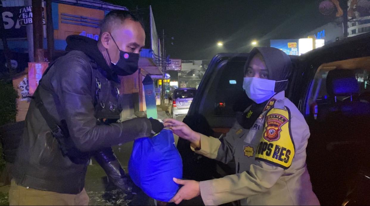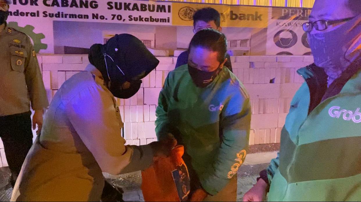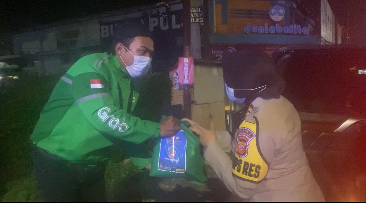 Ratusan pengemudi ojol (ojeg online) dan PKL (pedagang kaki lima) yang ada di kawasan Jalan Protokol Sukabumi terima bantuan sosial yang disalurkan Jajaran Polres Sukabumi Kota Polda Jabar pada Minggu (18/07/2021) dini hari.