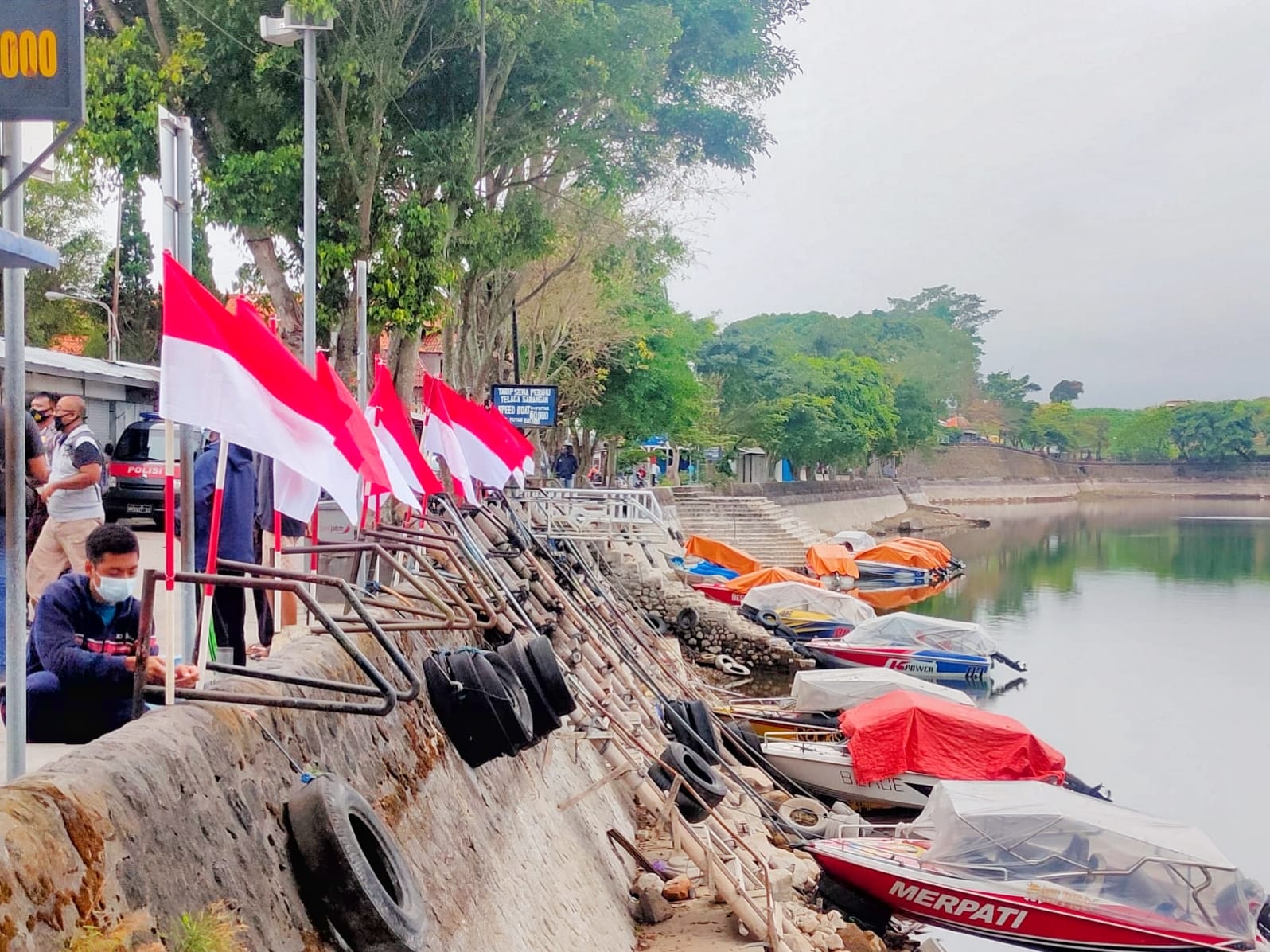 Sebagai simbol tetap semangat perjuangan melawan pandemi Covid-19 yang kebetulan juga dalam rangka HUT Kemerdekaan RI Ke 76, Kapolres Magetan juga mengajak pelaku wisata telaga Sarangan mengibarkan bendera merah putih.