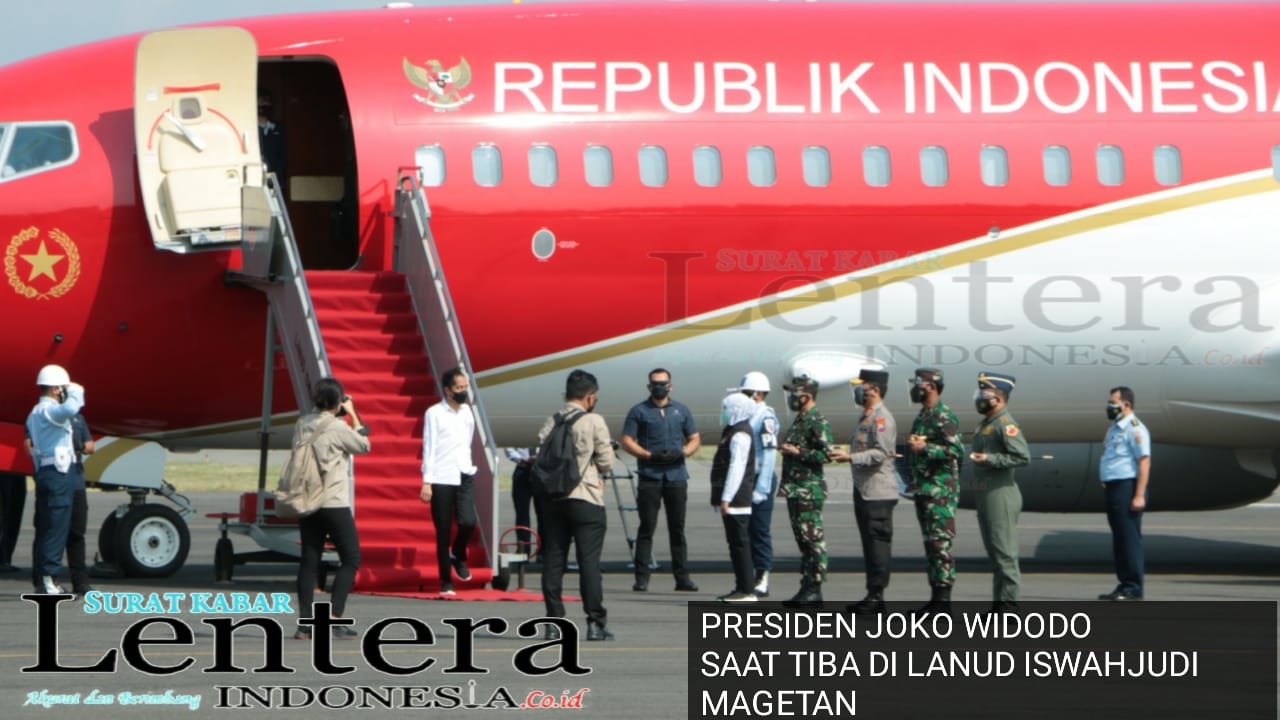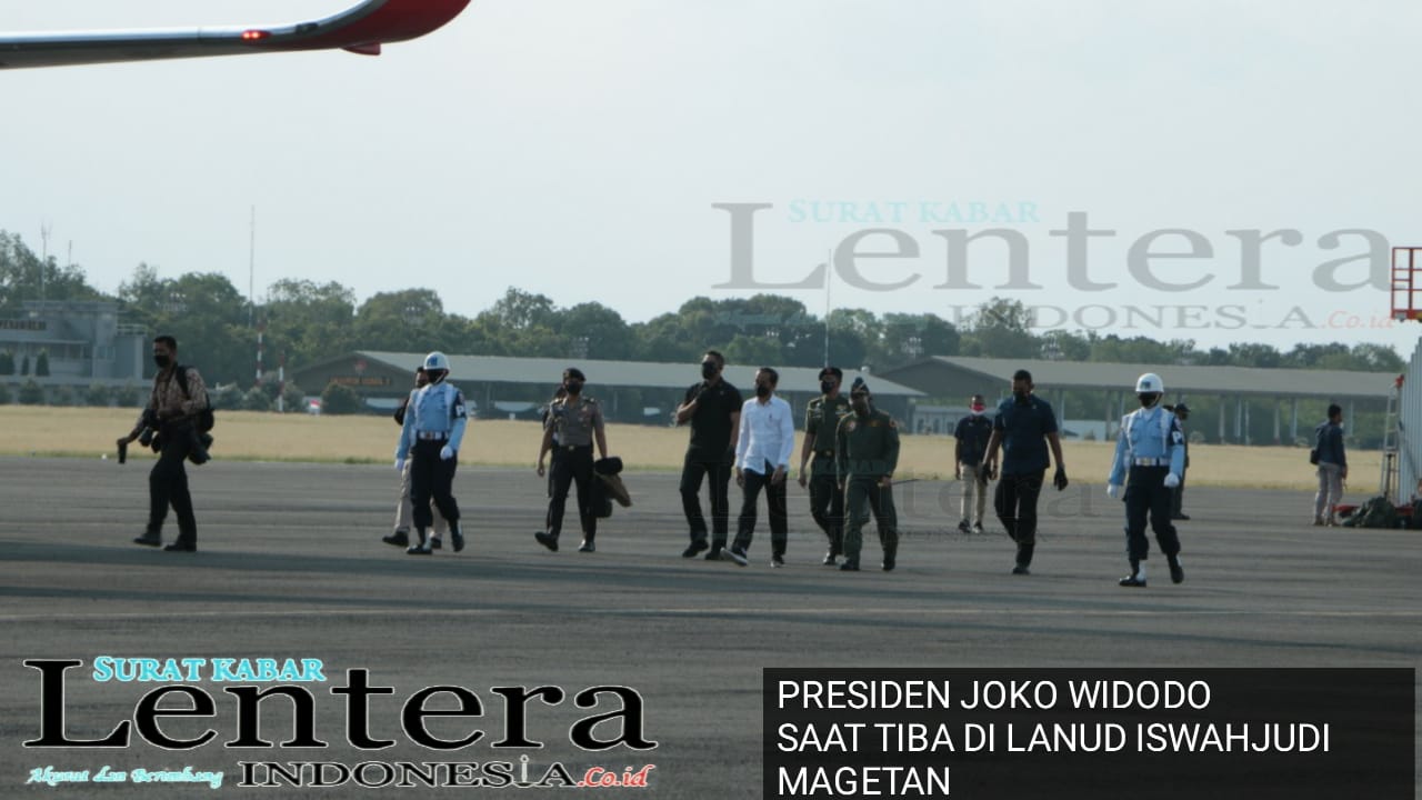 Komandan Lanud Iswahjudi Marsma TNI M. Untung Suropati, SE beserta Gubernur Jatim, Pangdam V/Brawijaya, Kapolda Jatim dan Pangkoarmada II menyambut kedatangan Presiden Republik Indonesia Bapak Ir. H. Joko Widodo di Main Apron Lanud Iswahjudi. Kamis (19/8/21).