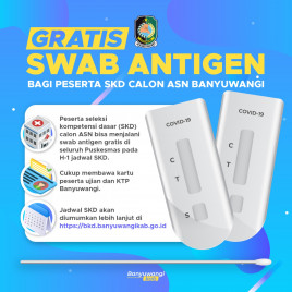 Bagi warga Banyuwangi peserta Seleksi Kompetensi Dasar (SKD) calon Aparatur Sipil Negara (ASN), Pemkab Banyuwangi menggratiskan biaya swab antigen sebagai syarat mengikuti ujian. Berdasarkan keputusan dari Badan Kepegawaian Negara (BKN), peserta yang mengikuti Ujian SKD diwajibkan membawa surat RT-PCR kurun waktu maksimal 2×24 jam atau rapid test antigen kurun waktu maksimal 1×24 jam dengan hasil negatif sebelum mengikuti seleksi CPNS.