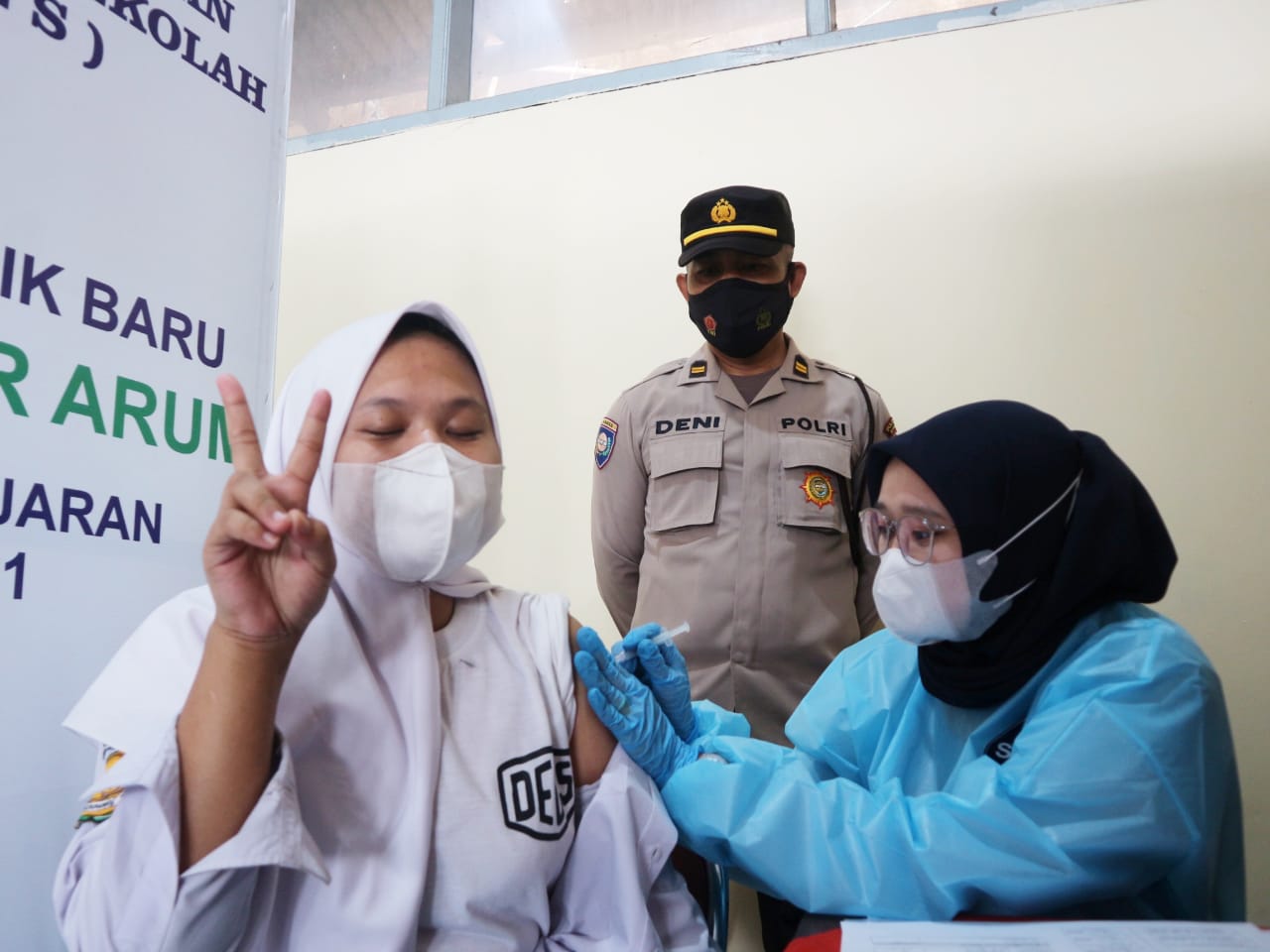 Kapolsek Cileunyi Polresta Bandung Polda Jabar Kompol Wahyo mengatakan vaksinasi hari ini menyiapkan sebanyak 450 vaksin yang ditujukan kepada siswa siswi SMA Mekar Arum, SMP 1 Cileunyi dan untuk masyarakat umum.