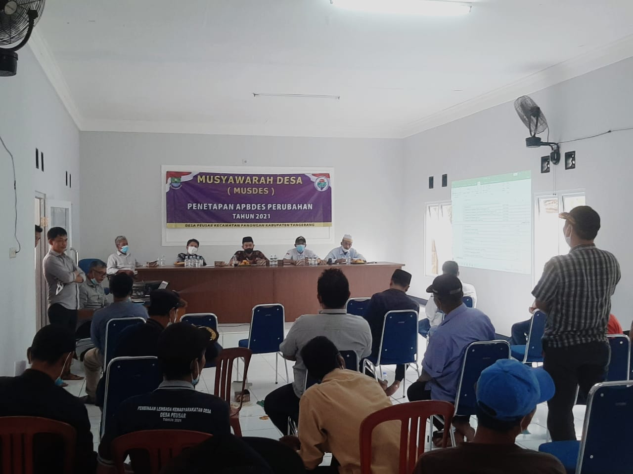 Dalam rangka penetapan APBDes perubahan Tahun 2021, Pemerintah Desa Peusar Kecamatan Panongan Kabupaten Tangerang Menggelar Musyawarah Desa (Musdes), Kamis (30/09/21).