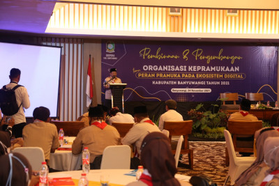 Wakil Bupati Banyuwangi Sugirah membuka secara resmi kegiatan pembinaan dan pengembangan organisasi kepramukaan yang diselenggarakan oleh Dinas Pemuda dan Olahraga Kabupaten Banyuwangi. Ratusan pramuka mengikuti pembinaan yang mengangkat tema peran pramuka pada ekosistem digital yang digelar di Hotel Santika, Rabu (24/11/21).