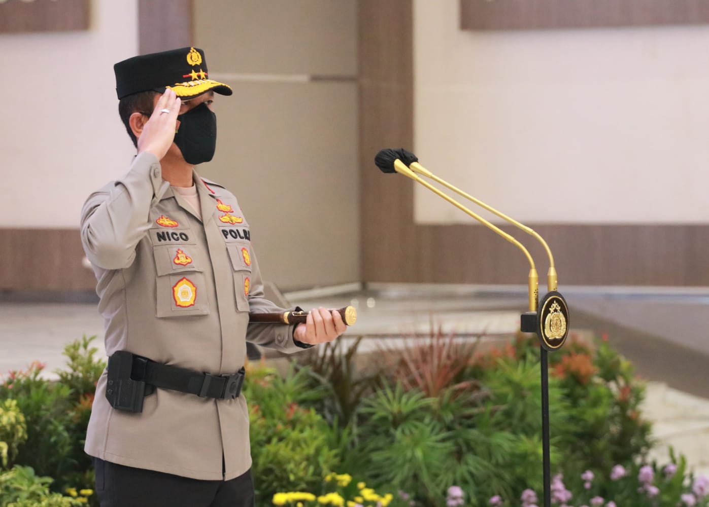 Kapolda Jawa Timur Irjen Pol Nico Afinta memimpin langsung upacara kenaikan pangkat anggota Polda Jatim di gedung Mahameru Mapolda Jatim, Senin (3/1/2022) pagi.