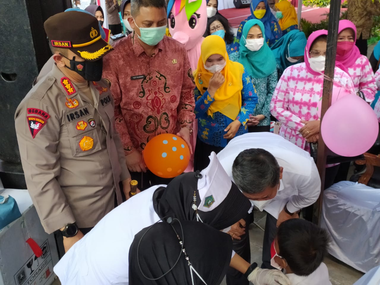 Kapolresta Deli Serdang Kombes Pol Irsan Sinuhaji Launching Vaksinasi merdeka umur 6 tahun sampai 12 tahun di wilayah hukum Kabupaten Deli Serdang bertempat di SD Negeri 108484 Lubuk Pakam (SD Percontohan) Jalan Diponegoro, Kecamatan Lubuk Pakam, Kabupaten Deli Serdang, Kamis (13/1/2022) sekitar pukul 09.30 wib.