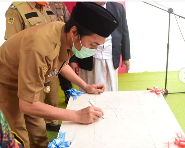 Penandatanganan prasasti oleh Bupati Madiun menjadi penanda peresmian SMP Bunga Bangsa Terpadu tersebut.