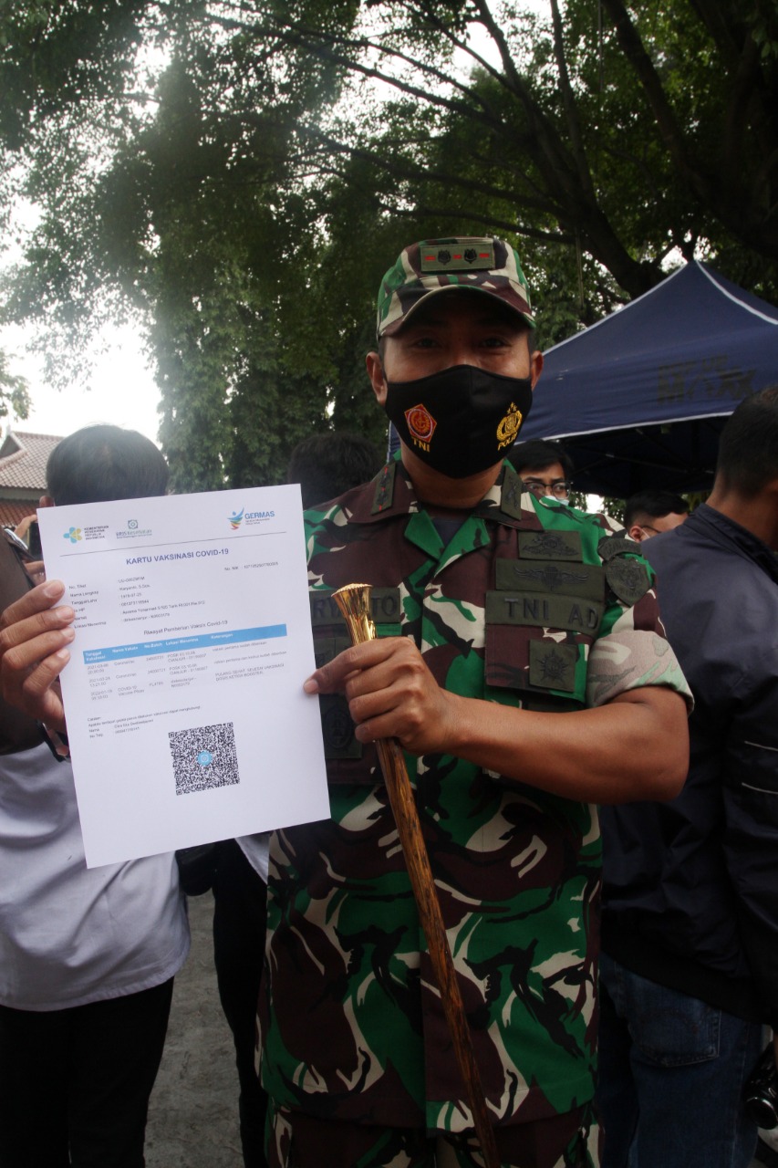 Komandan Kodim 0608/Cianjur, Letkol Arm Haryanto, S. Sos menerima suntikan Vaksin Booster di lingkungan Pemerintah Kabupaten Cianjur, dalam rangka mensukseskan program pemerintah dalam percepatan herd Immunity.