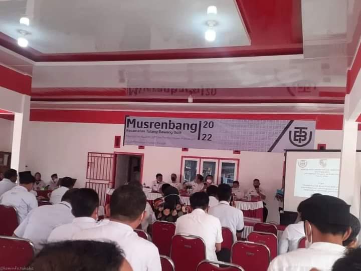 Asisten I Bidang Pemerintah dan Kesra Kabupaten Tulang Bawang Barat Dra. Bayana,. M.Si. menghadiri kegiatan Musyawarah Rencana Pembangunan (musrembang) Tingkat Kecamatan se-Kabupaten Tulang Bawang Barat berlangsung di Kantor Balai Tiyuh Karta Kecamatan Tulang Bawang Udik Kebupaten Tulang Bawang Barat, Rabu (26/01/2022).