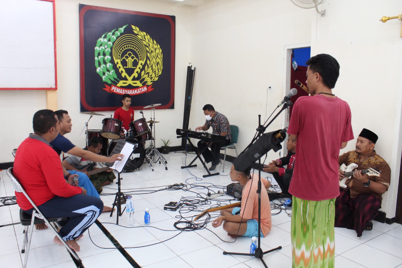 Latihan musik di Lapas Jember merupakan salah satu kegiatan pembinaan yang selalu diagendakan beberapa kali seminggu. Mereka, para Warga Binaan sering kali memanfaatkan kesempatan tersebut untuk meningkatkan kualitas bermain musik mereka, atau hanya sekedar menghibur diri. Namun sesuatu yang tidak biasa terlihat dalam latihan musik yang diadakan pada Sabtu (12/3/2022) pagi di Aula Lapas kali ini. Kalapas Jember, Hasan Basri ikut ambil bagian dalam latihan tersebut. Dirinya terlihat memainkan tuts keyboard mengiringi dua vokal yang dipegang oleh Prawono, Petugas Pembinaan, dan salah seorang warga binaan.