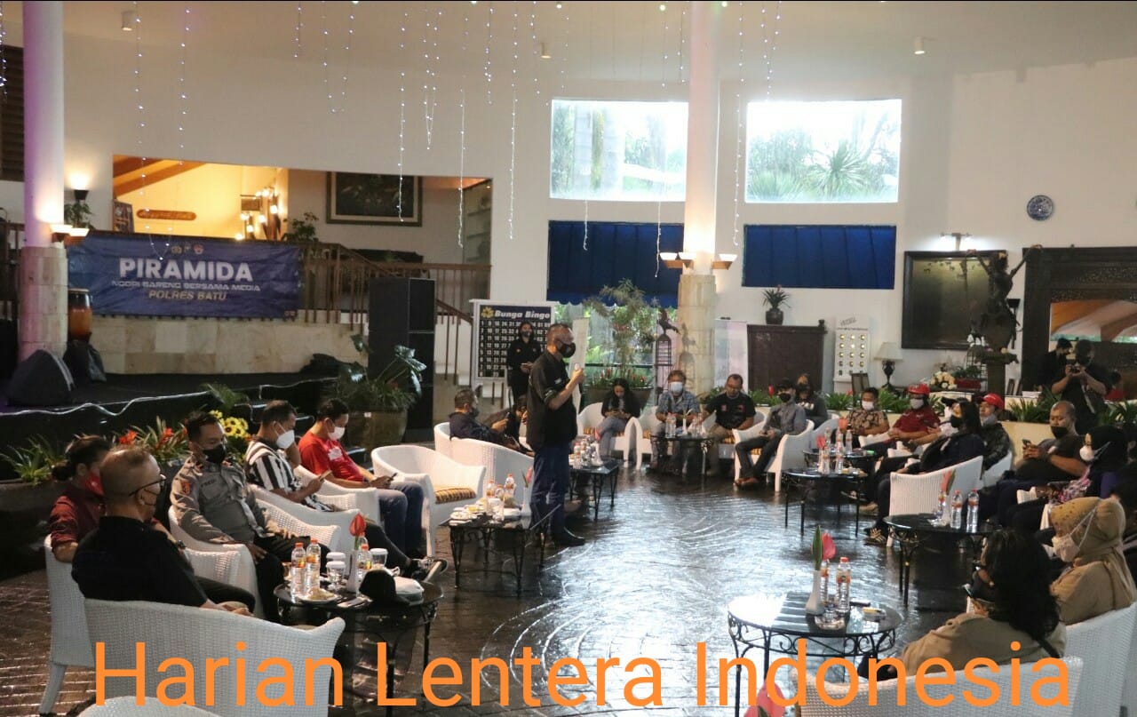 Sinergitas antara Polres Batu bersama media terwujud dalam kegiatan Piramida (Pembinaan Media), Polres Batu dalam kinerjanya terus berupaya menciptakan kondisi daerah yang aman terkendali dan Kondusif maka peran pers tidak bisa dikesampingkan dalam menjamin kondisi daerah hal itu disampaikan Kapolres Batu AKBP I Nyoman Yogi Hermawan yang diwakili oleh Kasi Humas Polres Batu, Iptu Ivandi Yudistiro dihadapan para wartawan Pokja Polres Batu di Aula Club Bunga Batu (12/3/22) dalam kesempatan tersebut Kasi humas Polres Batu secara tegas menyampaikan “Pers dituntut untuk menyajikan berita yang didasari fakta dan tidak mencampurnya dengan opini pribadi, Wartawan harus menulis berdasarkan fakta bukan berita Hoax.