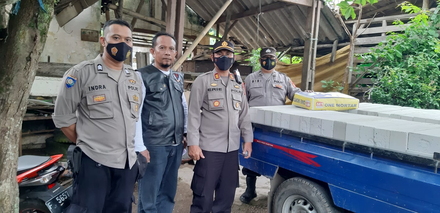 Polres Cianjur Polda Jawa Barat – Kapolsek Bojongpicung Polres Cianjur AKP Eriyanto, S.H. Bersama Bhabinkamtibmas memberikan bahan bangunan berupa bata hebel untuk pembangunan Rumah Tidak Layak Huni (RUTILAHU) milik Ibu Uum di Kampung Cipetir Desa Sukatani Kecamatan Haurwangi, Jumat (17/06).
