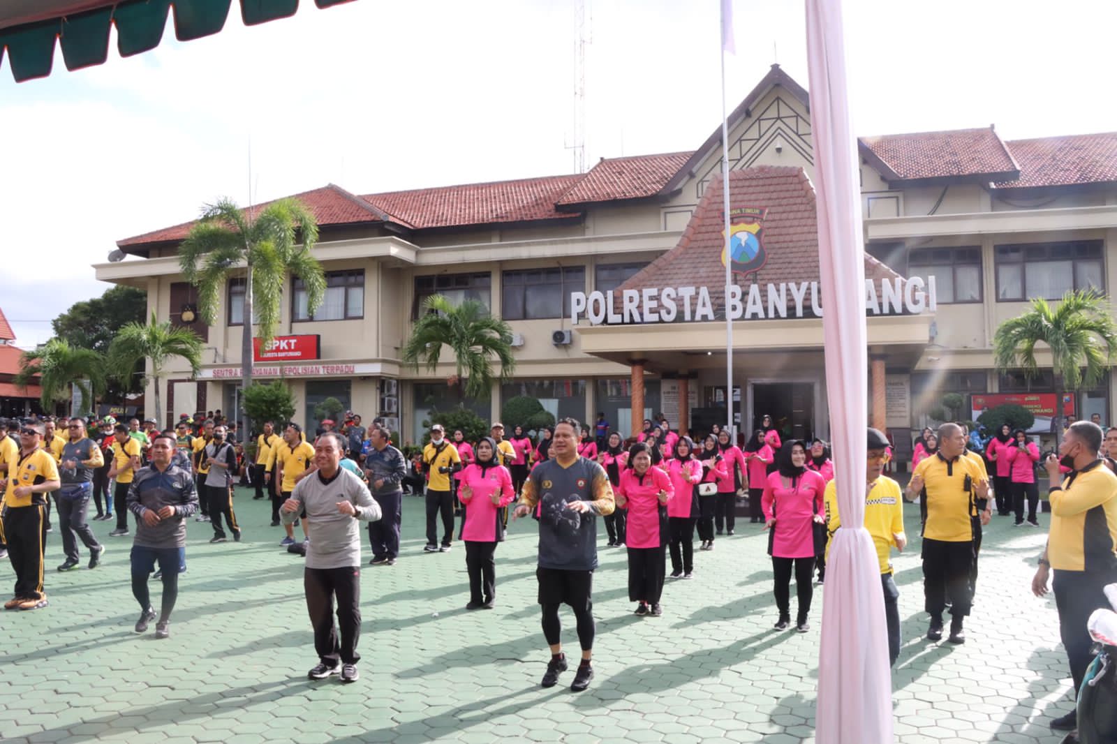 Kapolresta Banyuwangi, AKBP Deddy Foury mengatakan kegiatan bersepeda santai dan senam ini digelar dalam rangka meramaikan HUT Bhayangkara Ke-76.
