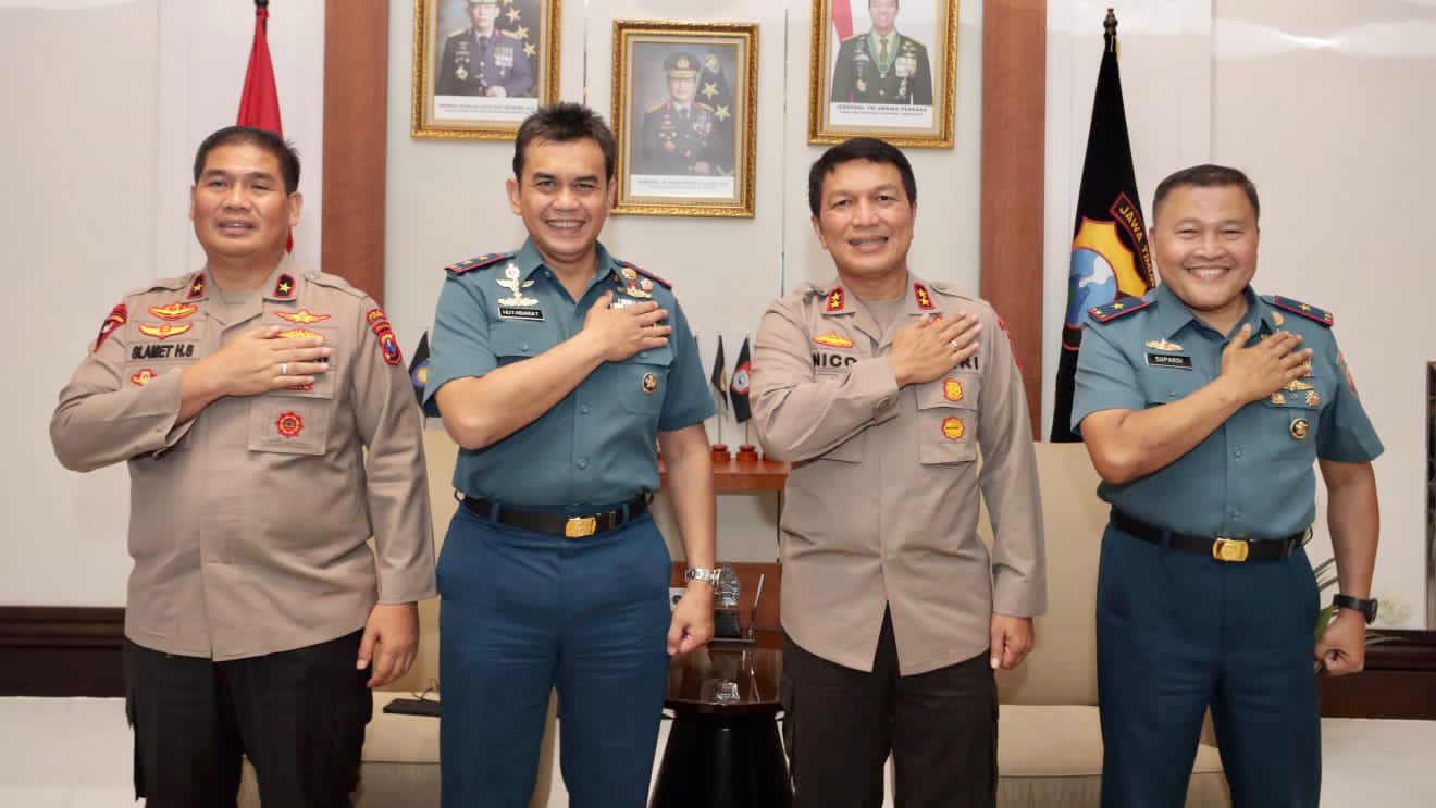 Kapolda Jawa Timur Irjen Pol Nico Afinta, bersama Wakapolda Jatim Brigjen Pol Slamet Hadi Supraptoyo, didampingi Pejabat Utama Polda Jatim, Kamis (11/8/2022) siang, menerima dengan hangat kunjungan kehormatan Pangkoarmada II Laksda TNI Dr. T.S.N.B Hutabarat dan Danlantamal V Surabaya Laksma TNI Supardi di Lobby lantai 2 Gedung Patuh, Mapolda Jatim.
