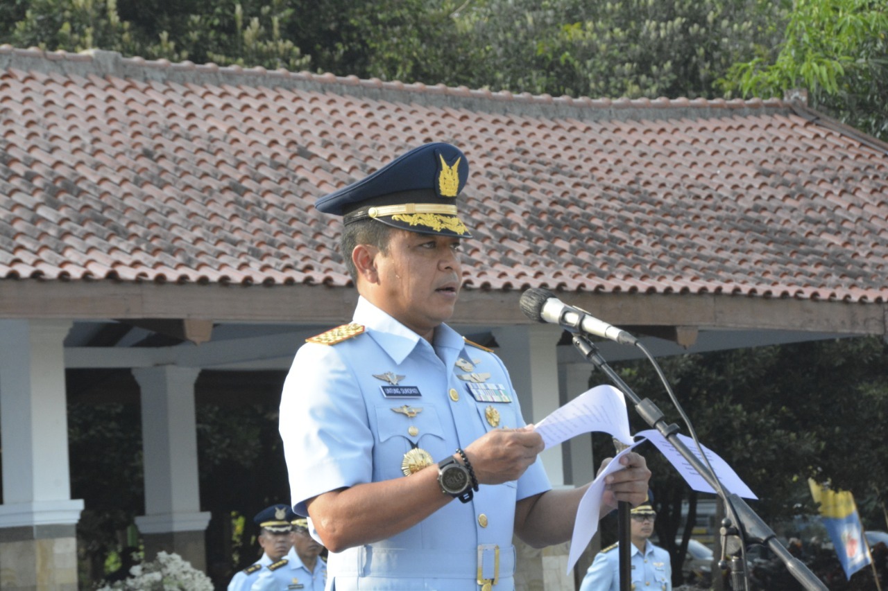 Komandan Lanud Iswahjudi Marsma TNI M. Untung Suropati, SE bertindak selalu inspektur upacara pada Peringatan Ke-59 HUT Wanita Angkatan Udara (Wara) di lapangan Dirgantara Lanud Iswahjudi, Jumat (12/8/2022).