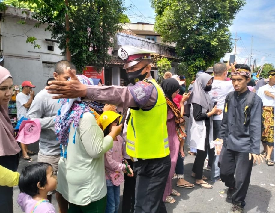 Kegiatan pengamanan dan pengaturan arus lalu lintas dalam acara karnaval dipimpin langsung Iptu Budi Mujiono, bersama personil Satlantas Polresta Banyuwangi, mengamankan acara karnaval agar berlangsung aman lancar dan kondusif.