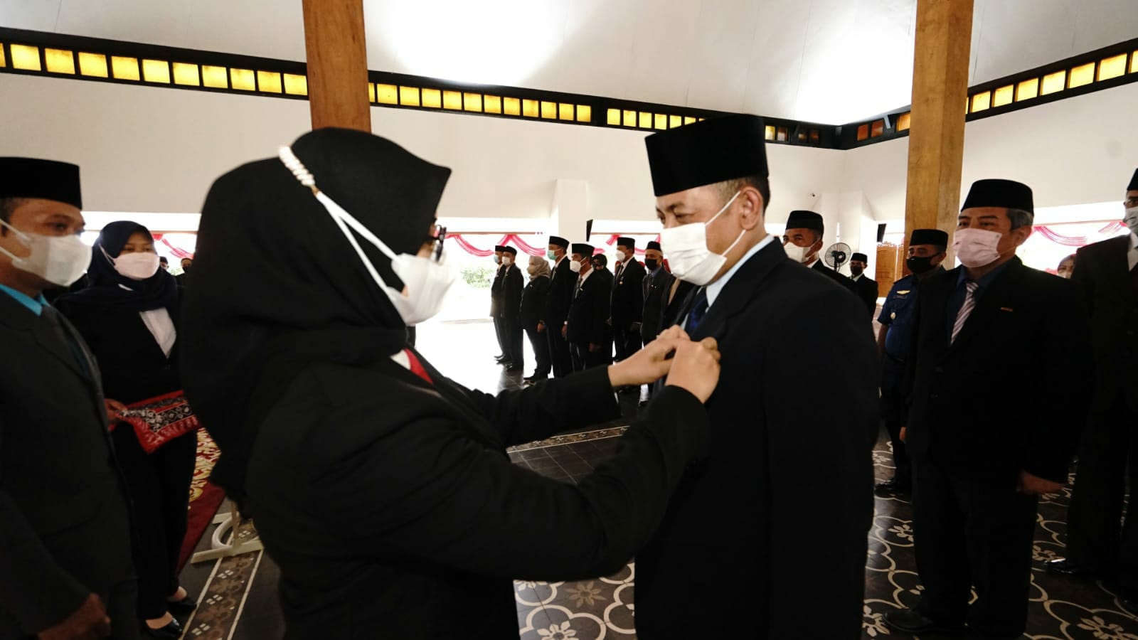 Bupati Banyuwangi Ipuk Fiestiandani, menyerahkan Tanda Kehormatan Satyalancana bagi Aparatur Sipil Negara (ASN) yang berdedikasi. Para penerima satya lencana ini telah bertugas selama puluhan tahun di lingkungan Pemerintah Kabupaten Banyuwangi.