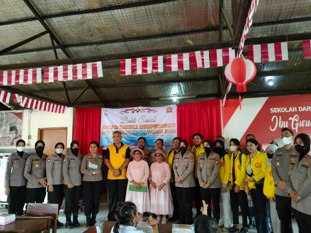 Bakti Sosial Ditbinmas Polda Metro Jaya dalam Rangka Memperingati HUT Polwan Ke-74 Tahun 2022 di Sekolah Darurat Kartini Jalan, Lodan Raya, Blok A, Kelurahan, Ancol Pademangan (Kolong Jembatan Tol Lodan Pademangan). Jumat, (02/9/2022).