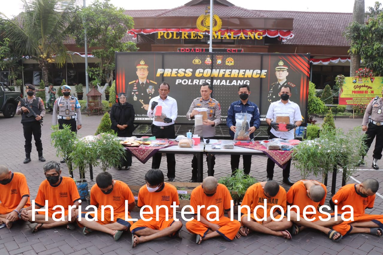 “Tidak ada ruang bagi pelaku tindak pidana Narkotika untuk bebas bergerak menyalahgunakan Narkotika di Kabupaten Malang, kami akan kejar terus setiap bentuk penyalahgunaan Narkotika hingga benar-benar bisa melindungi masyarakat terutama generasi muda” pungkas Kapolres Malang AKBP Ferli Hidayat.