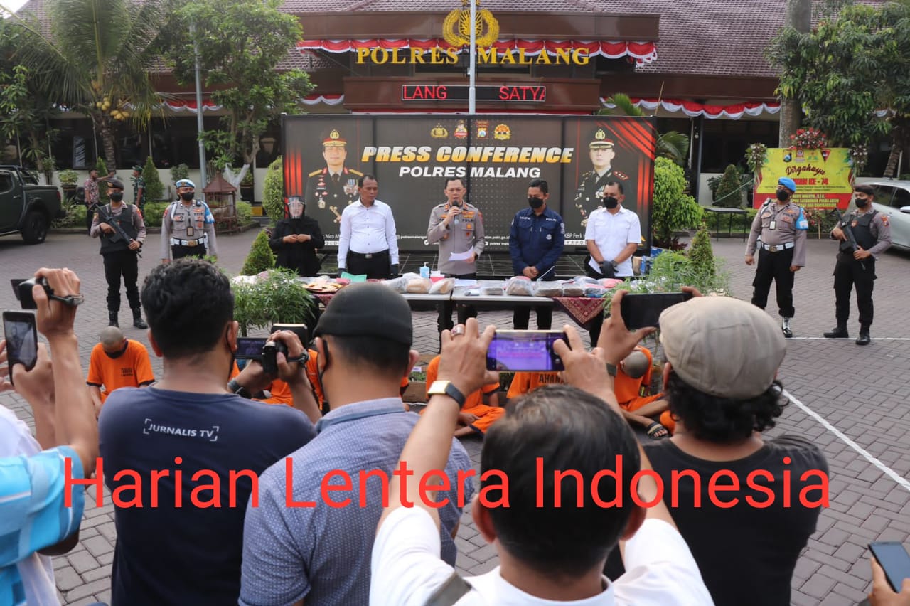 Kapolres Malang, AKBP Ferli Hidayat memimpin Press Conference Operasi Tumpas Narkoba Semeru 2022, dengan didampingi oleh Kau Bin Ops Sat Resnarkoba IPTU Umarji dan Kasi Humas IPTU Ahmad Taufik, yang bertempat di Lapangan Satya Haprabu Mapolres Malang, Kecamatan Kepanjen, Kabupaten Malang. Senin (5/9/2022).