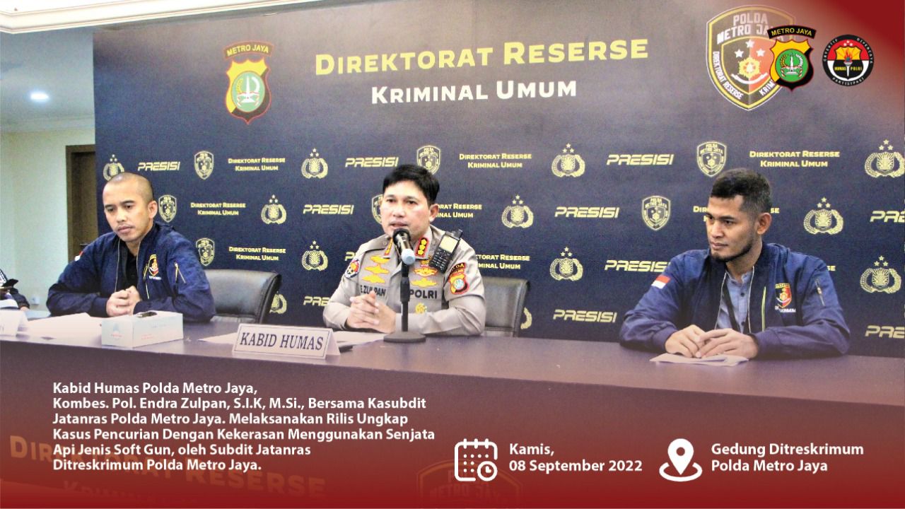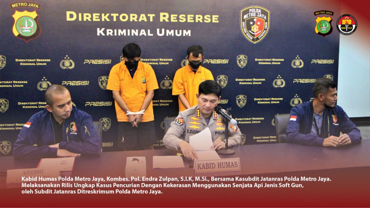 Penyidik Subdit Kejahatan dan Kekerasan, Direktorat Reserse Kriminal Umum Polda Metro Jaya meringkus dua pelaku perampokan dengan modus sebagai anggota TNI dengan tabrak lari di kawasan Pasar Minggu, Jaksel, pada 29 Agustus 2022 silam.