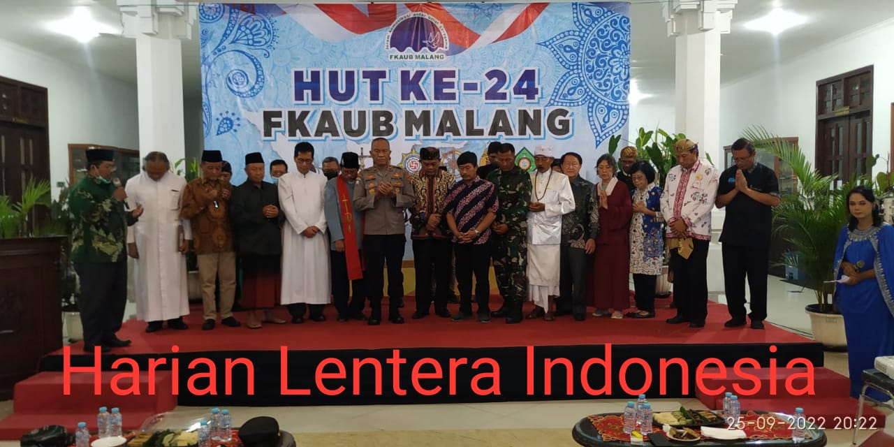 Forum Komunikasi Antar Umat Beragama (FKAUB) Malang memperingati hari jadinya yang ke 24 dengan mengangkat tema “Merajut Persaudaraan Sejati” yang dilaksanakan di Lobi lantai 1 Gedung DPRD kota Malang (25/9/22) malam dan dihadiri oleh 180 orang peserta dari Tokoh agama,Ormas dan perwakilan Forkopimda kota Malang.