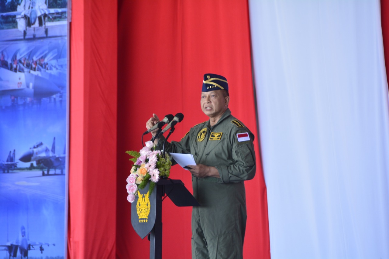 Kasau dalam sambutannya berpesan untuk mengoperasikan F-16 ini dengan baik, rawat dan berharap ini akan menambah kebanggaan serta kekuatan bagi Skadron Udara 14 dan selalu mengutamakan safety dalam setiap operasi dan penugasan, tegas Kasau.