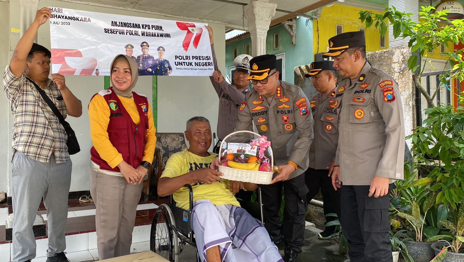 Kapolresta Banyuwangi Kombes Pol Deddy Foury Millewa dan Ketua Cabang Bhayangkari turun langsung dalam kegiatan anjangsana tersebut.