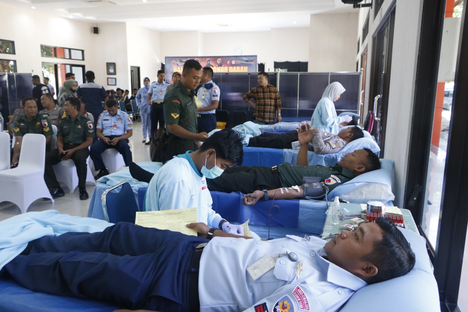 Kegiatan donor darah ini terselenggara bekerja sama RSAU dr Efram Harsana dengan Palang Merah Indonesia (PMI) Kota Madiun.