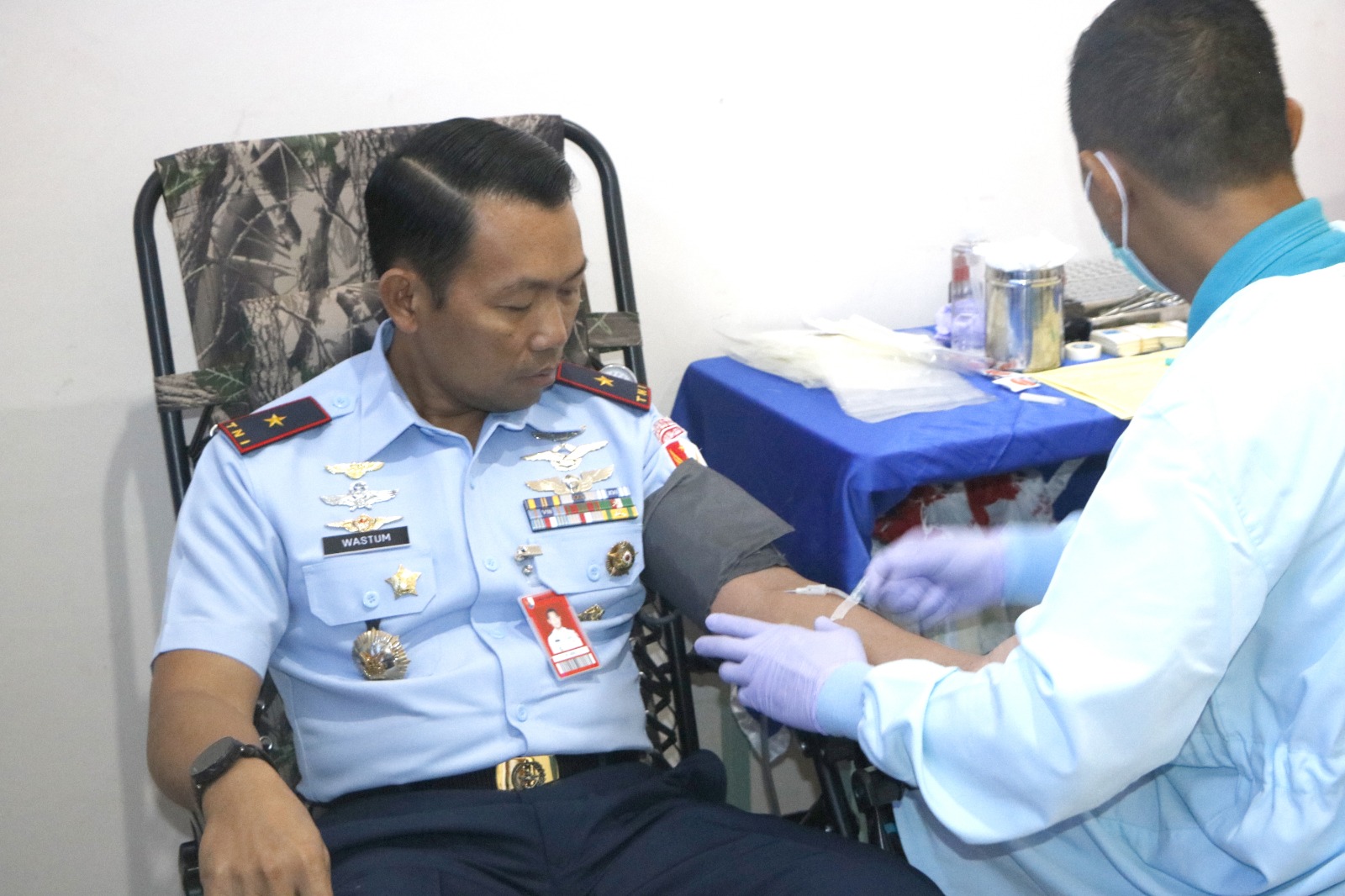 Hadir dalam dan turut serta donor darah Danlanud Iwj Wastum, S.E., M.MP., MS( NSSS), Ketua PIA Ardhya Garini Cabang 2 /D.II Lanud Iwj Ny. Indri Wastum dan pengurus, Ka. RSAU Dr. Efram Harsana Kolonel Kes dr. Tjatur Budi Winarko, Sp.B, para pejabat Lanud, Komandan Satuan dan insub.