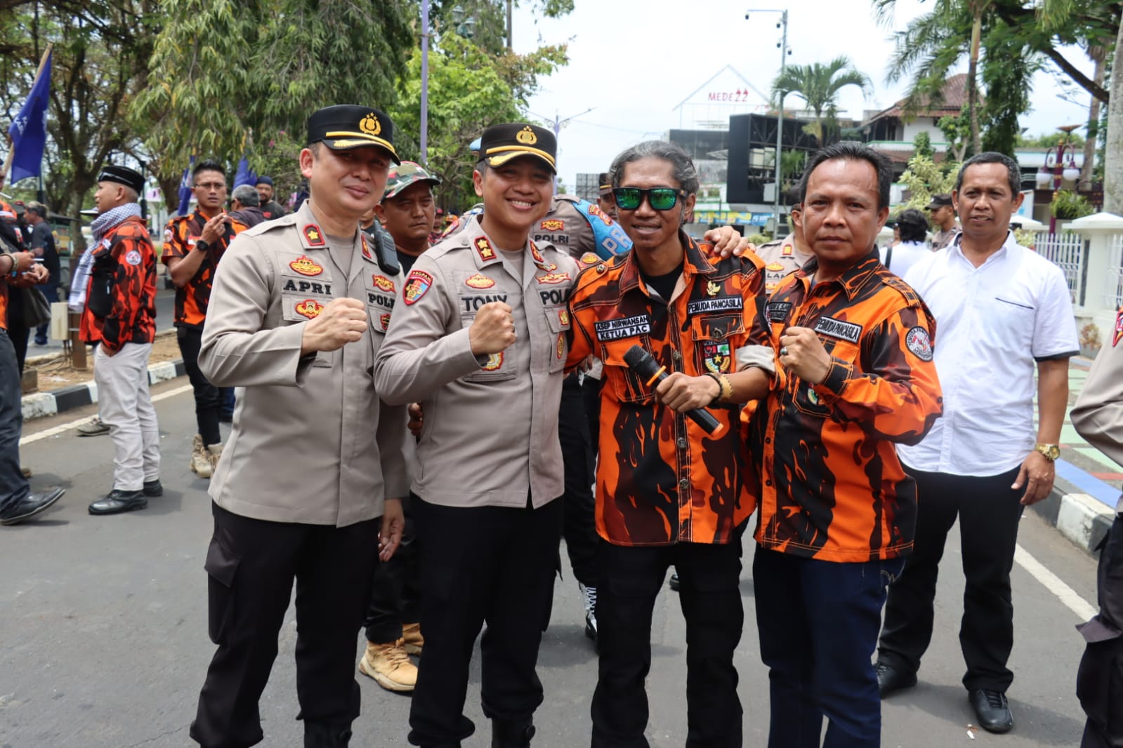 Pantauan dilapangan, Kapolres Ciamis Polda Jabar AKBP Tony Prasetyo Yudhangkoro, SH., S.I.K., M.T., secara humanis menyambut massa aksi yang tergabung dalam elemen solidaritas Tatar Galuh Ciamis. Tak hanya itu, Kapolres Ciamis yang didampingi oleh Wakapolres Ciamis Kompol Apri Rahman SE berada ditengah-tengah massa.
