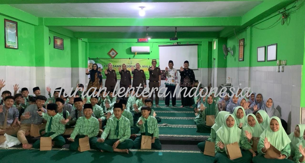 Kepala Kejaksaan Negeri Kota Malang Rudy H. Manurung, S.H., M.H. melalui Kepala Seksi Intelijen Dr. Eko Budisusanto, S.H., M.H. menyampaikan bahwa Kejaksaan Negeri Kota Malang menggelar kegiatan Jaksa Masuk Pesantren di MTs – MA Hidayatul Mubtadi’in Tasikmadu Kota Malang pada hari Kamis, 14 Maret 2024. Kegiatan ini dihadiri oleh Kepala MTs dan MA, para Guru dan 53 siswa siswi MTs – MA Hidayatul Mubtadi’in Tasikmadu Kota Malang.