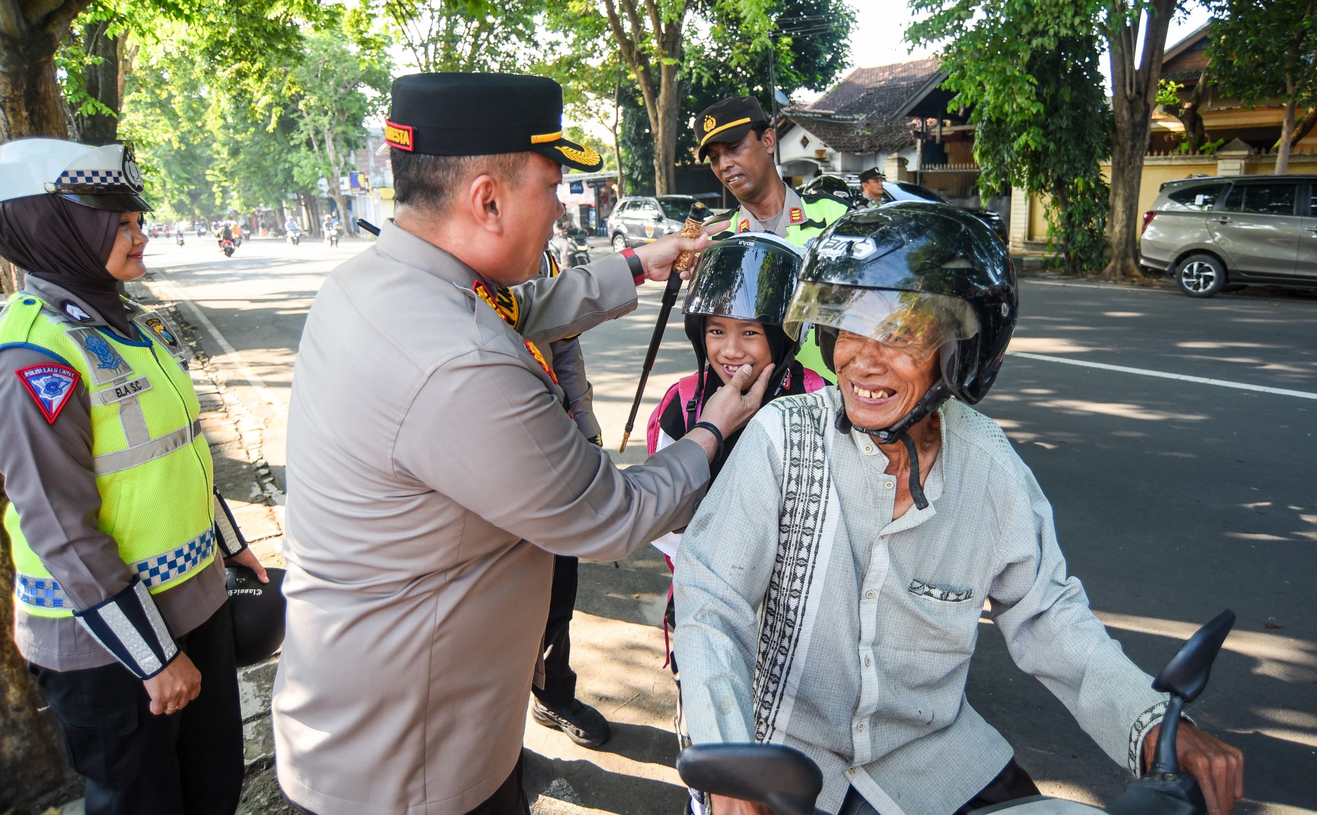 Selain membagikan helm, lanjut orang nomor satu di Polresta Banyuwangi hal tersebut guna memberikan edukasi kepada orang tua siswa. Imbauannya yakni untuk selalu taat aturan berlalu lintas dan mengedepankan keselamatan.