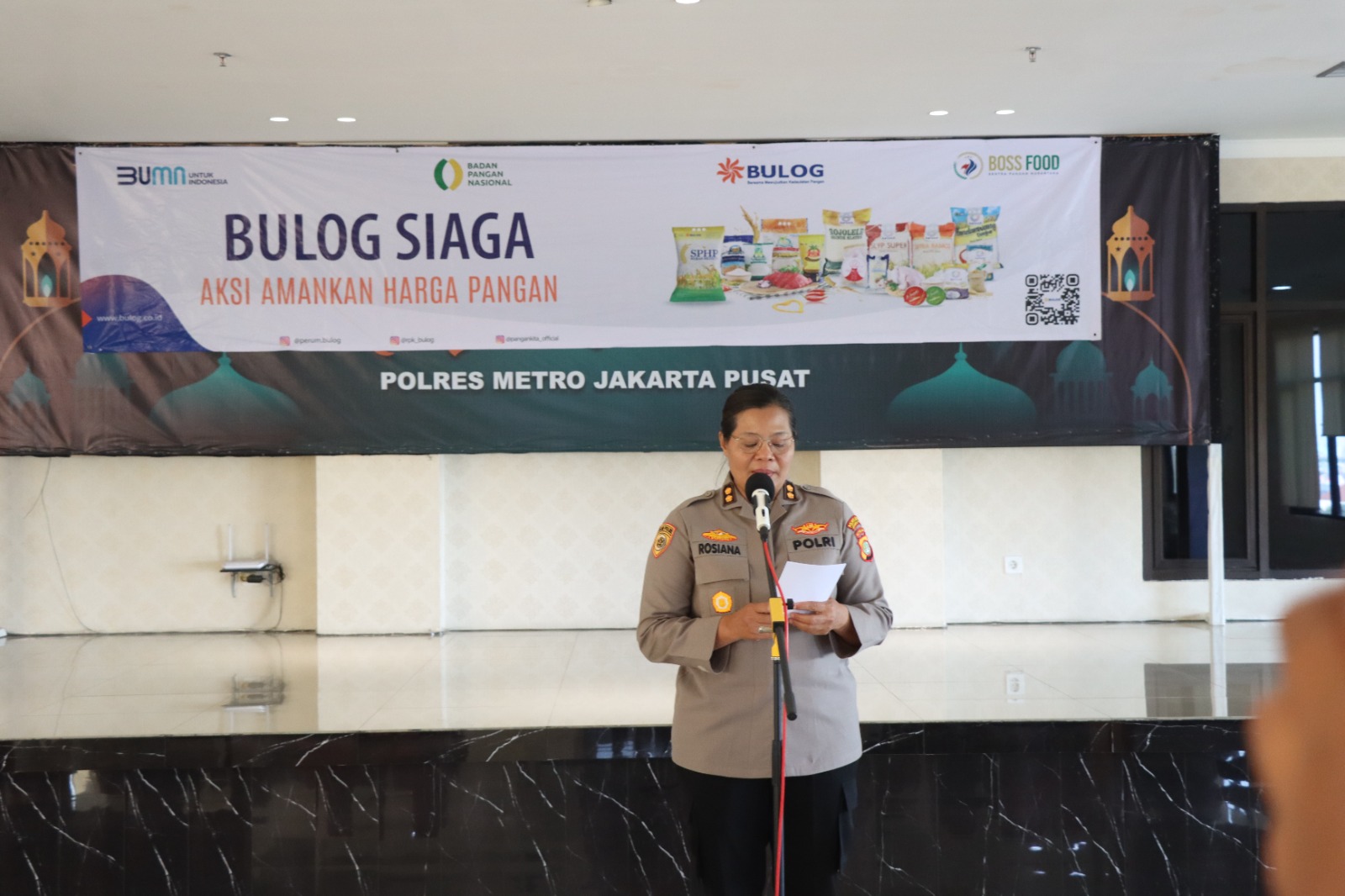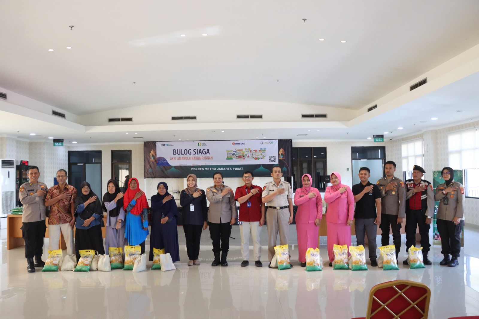 Kabag SDM Polres Metro Jakarta Pusat AKBP Rosiana memimpin kegiatan pemberian sembako murah di Polres Metro Jakarta Pusat dalam upaya meningkatkan ketahanan pangan di jajaran Polres Metro Jakarta Pusat. Kamis (21/03/2024).