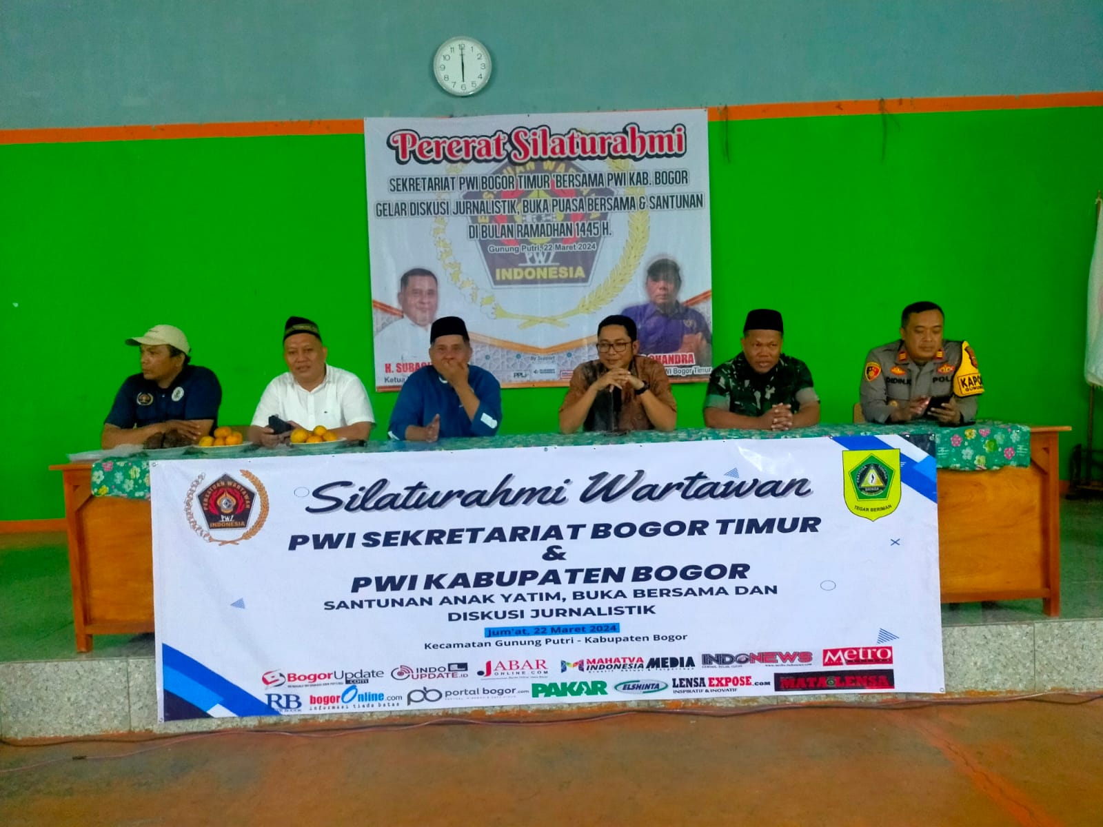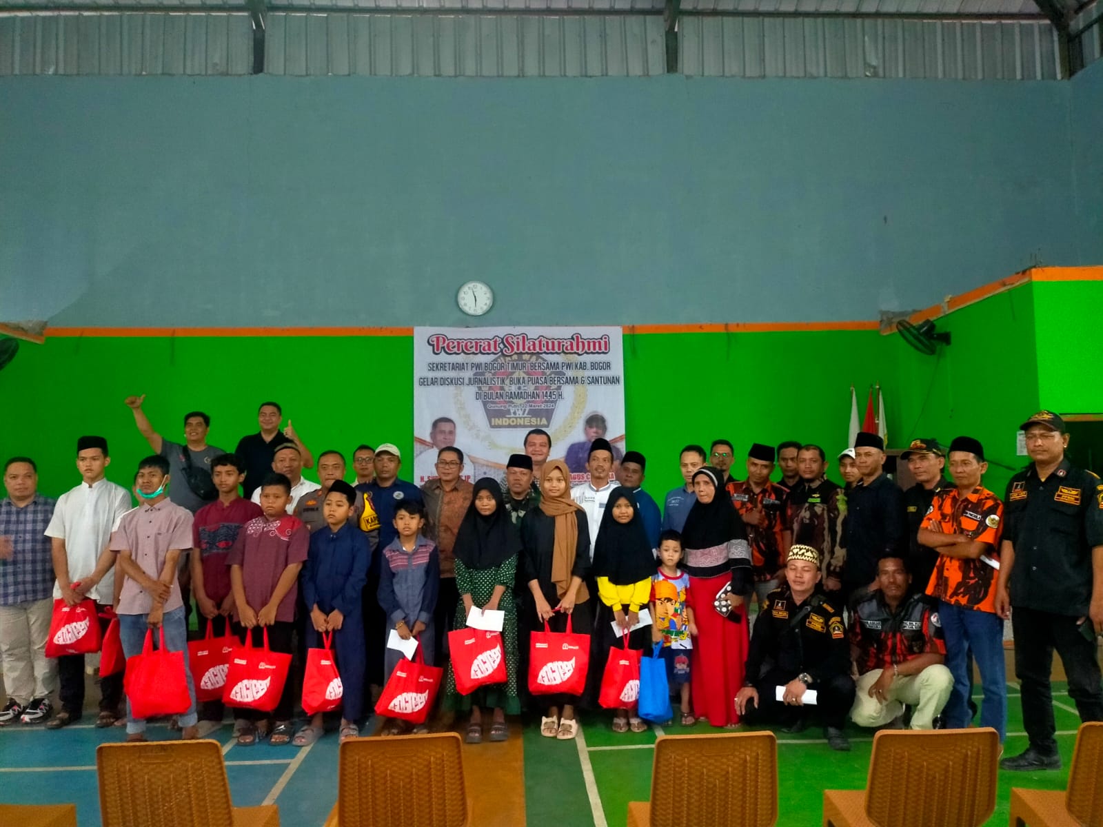 Sekretariat Persatuan Wartawan Indonesia (PWI) Bogor Timur, menghelat buka bersama serta santunan kepada belasan anak yatim, bertempat di GOR PGRI Gunung Putri.Tampak hadir juga di kegiatan ini, Ketua PWI Kabupaten Bogor, Subagiyo didampingi Wakil Ketua 1 Bidang Organisasi Keprofesian dan Kewartawanan (OKK) Dedy Firdaus, Jum’at (22/3/24).