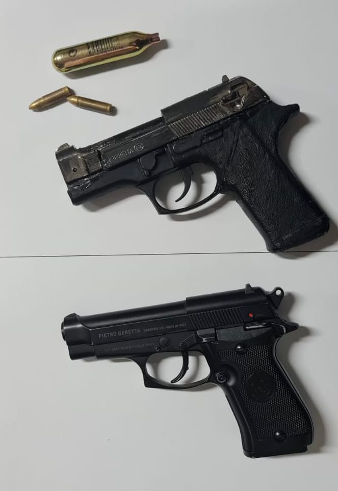 Setelah pengakuan tersebut Tim Opsnal melakukan penggeldahan dan didapatkan barang bukti berupa 1 pucuk senjata api airsoft gun dan 1 pucuk senjata korek api. Selanjutnya pelaku dan barang bukti diamankan untuk dibawa ke Polsek Mampang.
